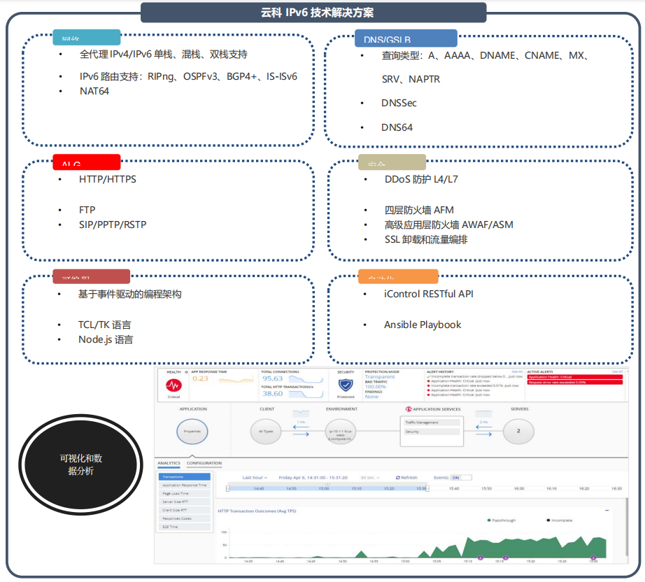 全球范围内支持无线和互联网的设备日益增多,导致 IPv4 地址快速耗尽。与此同时,IPv6 的普及速度比预计的要慢。服务给予商需要一款解决方案,帮助他们应对 IPv4 地址耗尽的问题,并基于无缝迁移到 IPv6 以实现网络优化。顺利获得给予大量的IP地址转换、快速的NAT 转换率、高吞吐率能力和高速的日志审计功能实现运营商级平台的可扩展性。