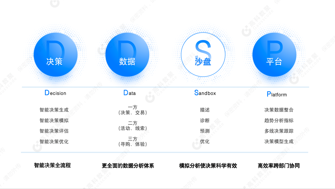 888集团 888智慧决策平台DDSP(Decision  Data Sandbox  Platform)从销售、市场、服务,以及智能制造等重要应用场景出发,从传统的专家决策方式向基于数据驱动的数智化决策进行全面升级。